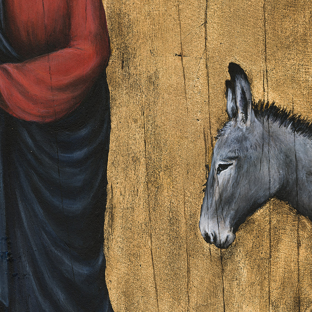 Borys Fiodorowicz draws on the language of the icon while simultaneously introducing an element of distance. As a result, the painting gains a universal dimension – it becomes a story about how tradition and modernity can coexist within a single composition. “Entrance. Episode Two” is a painting by Borys Fiodorowicz. This is a work that will find its best place in spaces that embrace bold and unconventional art. It fits modern living rooms, loft-style interiors, eclectic spaces, creative offices and art galleries, as well as private collections – in studies or home offices, where art is meant to inspire and encourage an intellectual play with the viewer.