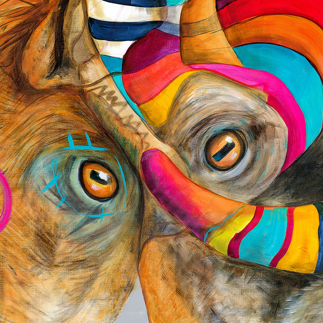 Two rams – animals usually associated with confrontation – in this painting do not fight but lean on each other. This is no accident. It is a deliberate metaphor of support, trust, and the strength that comes from closeness. Instead of rivalry – partnership. Instead of clash – understanding. Brewka, as always, reaches for intense colors to draw the eye and hold attention. Yet beneath the layer of aesthetics lies an emotional depth that makes this painting unforgettable. “SUPPORT” is contemporary art with a message – inspiring reflection and giving strength.