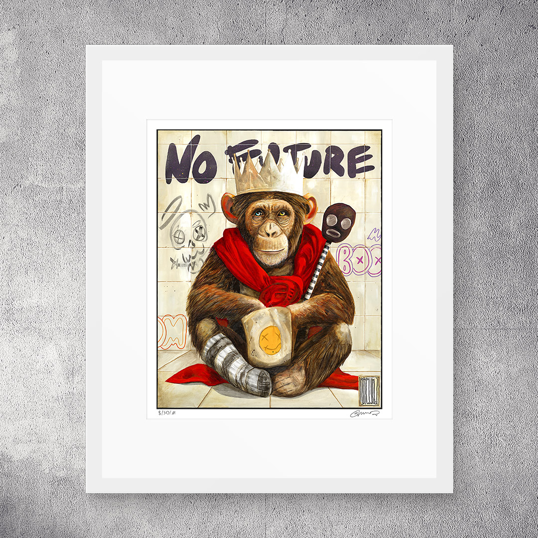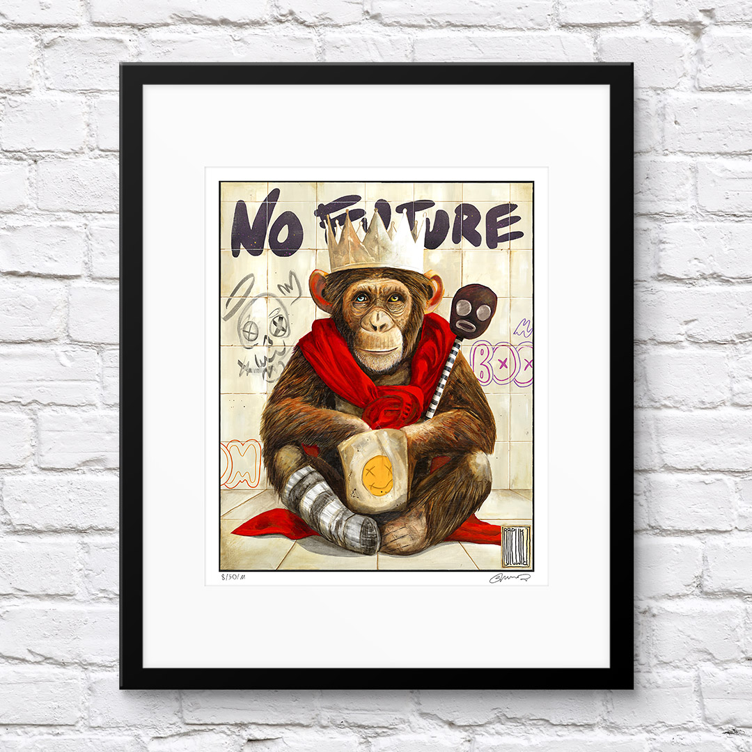 On the wall behind him, graffiti shouts “NO FUTURE,” yet in his gaze there is something that says the future is still in our hands – and it begins with a moment of peace, with a single breath.