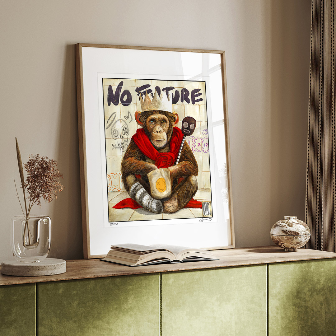 The monkey in the painting, with a crown on its head and melancholy in its eyes, becomes a guide to this realm of detachment. It is a king who needs neither crowds nor applause – silence, a bit of space, and his own thoughts are enough.